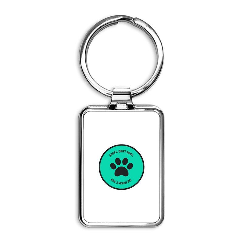 Rectangle keychain measures 1.07 x 1.57 x 0.125 inches